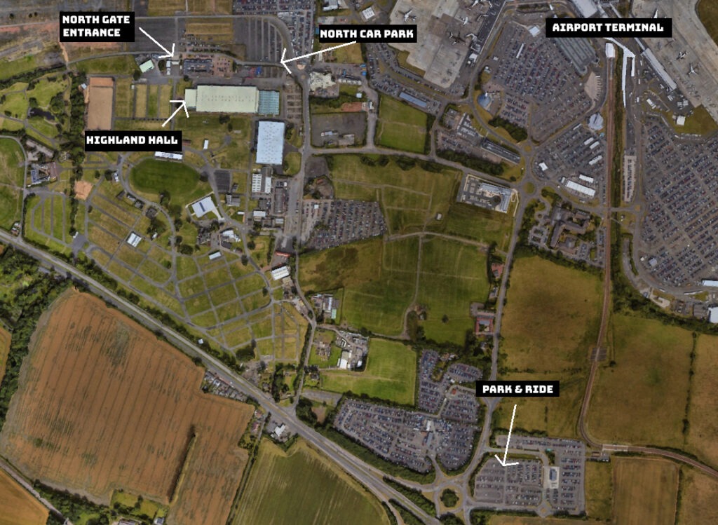 The North Car Park has space for 5,000 vehicles, and will have a dedicated Blue Badge section nearest the entrance to the Highland Hall. Parking is £10 per day. During the convention, signage will direct you to the car park.